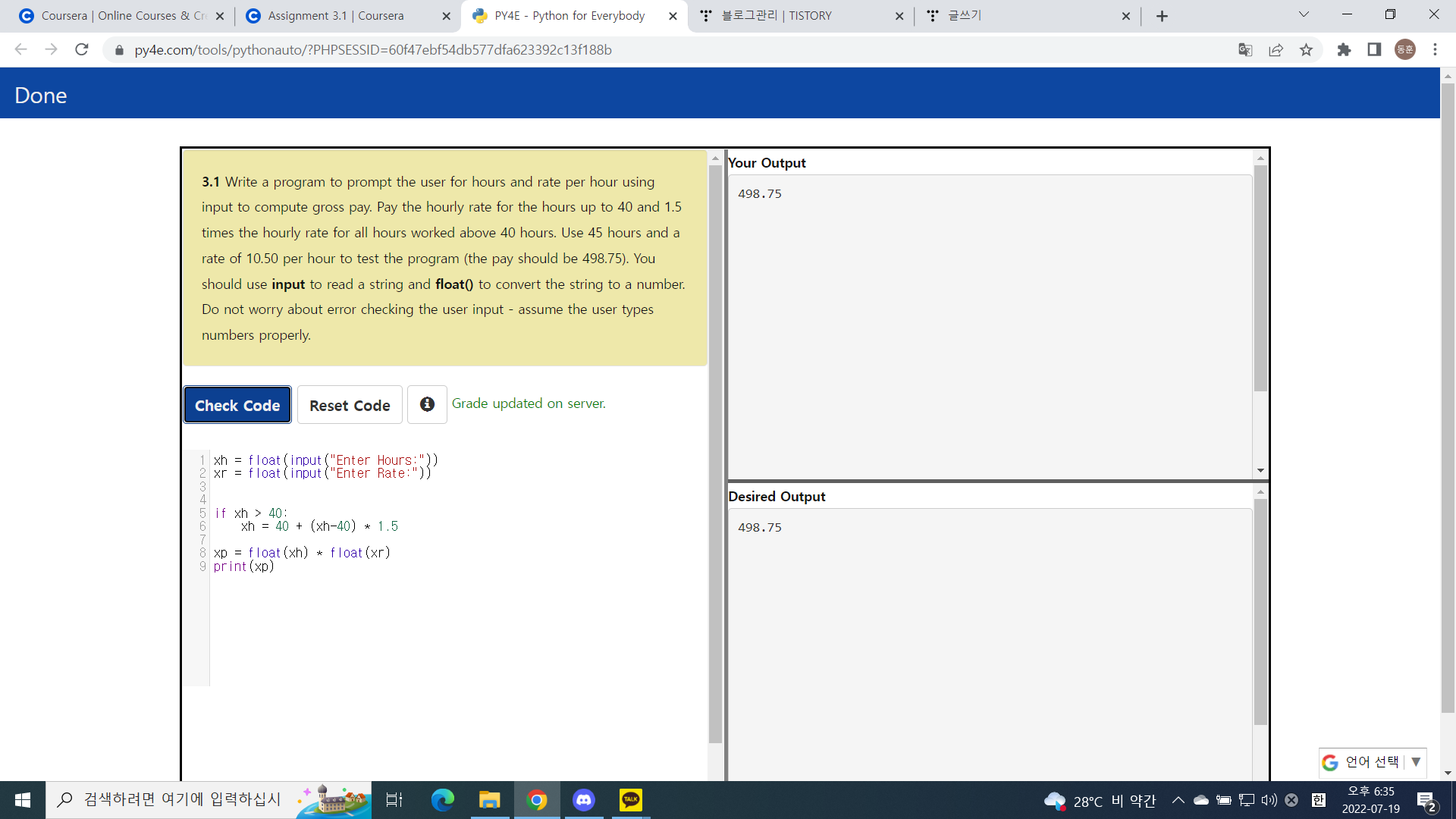 | Programming for Everybody (Getting Started with Python)-7 (0) | 2022.07.19 |